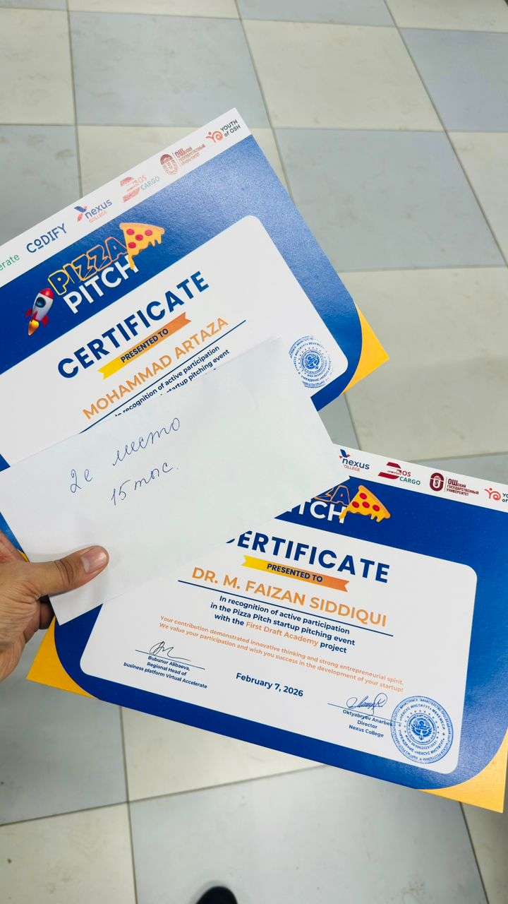 Студент 4 курса Международного медицинского факультета Артаза Шайх занял второе место и получил 15 000 сомов на конкурсе Startup Osh Pizza Pitch, прошедшем 7 февраля 2026 года в Nexus College Osh.