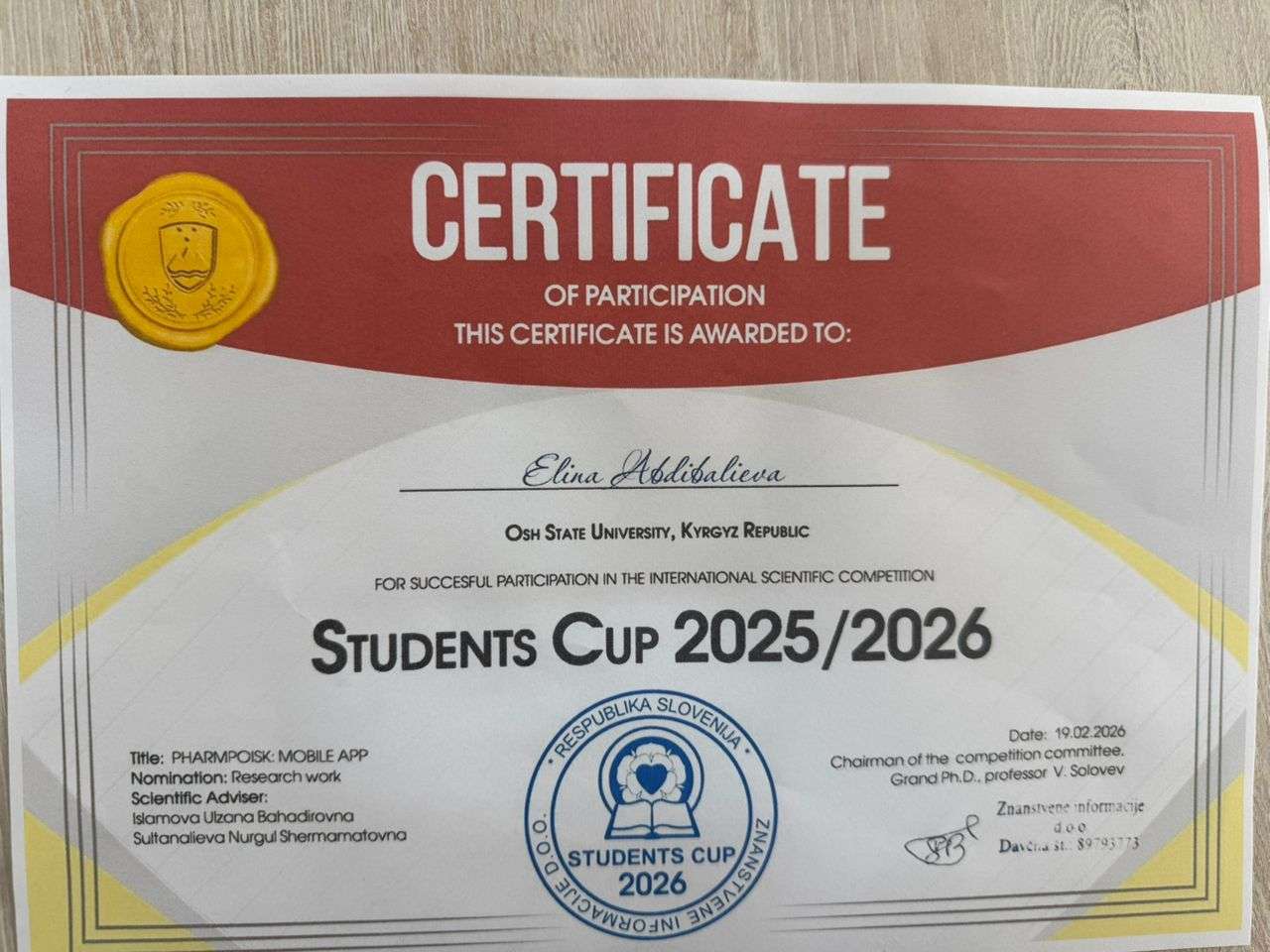 Студенты по направлениям “Менеджмент” и “Управление бизнесом” завоевали I место на III Международном конкурсе «Креативный туризм: реализация туристского потенциала территорий» с конкурсным проектом «Ош- провайдер Шелкового пути» под руководством преподавателей кафедры «Менеджмент и маркетинг» Исламовой У.Б. и Султаналиевой Н.Ш. проводимый факультетом Экономики, сервиса и управления Омского государственного технического университета (РФ). 2026г.