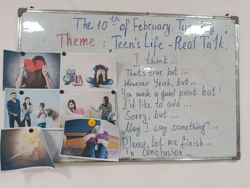 Students shared their thoughts and ideas on the topic “ Teen Life:Real Talk”. They discussed problems, experiences and solutions in every day life.