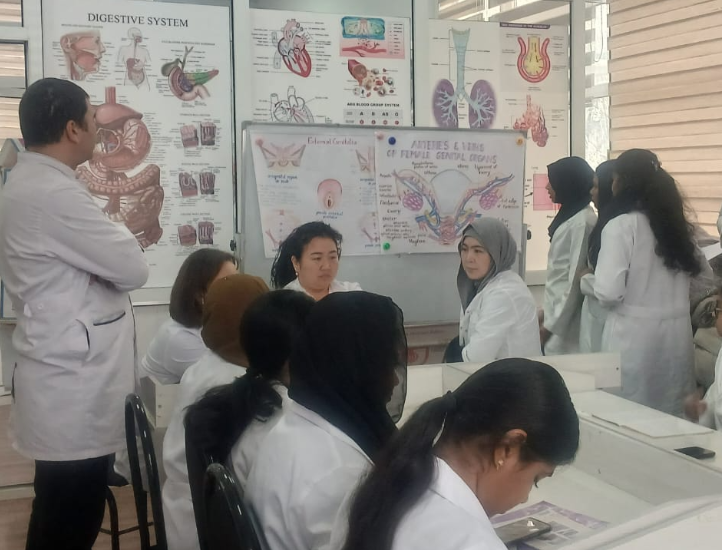 13 февраля 2026 года преподаватель кафедры «АГНФ» Ашимов Урмат провёл открытый урок на тему: “Female reproductive system” с применением интерактивного метода PBL. Применение данного метода помогает решать проблемные и профессионально-ориентированные задачи, также развивает критическое и клиническое мышление студентов.