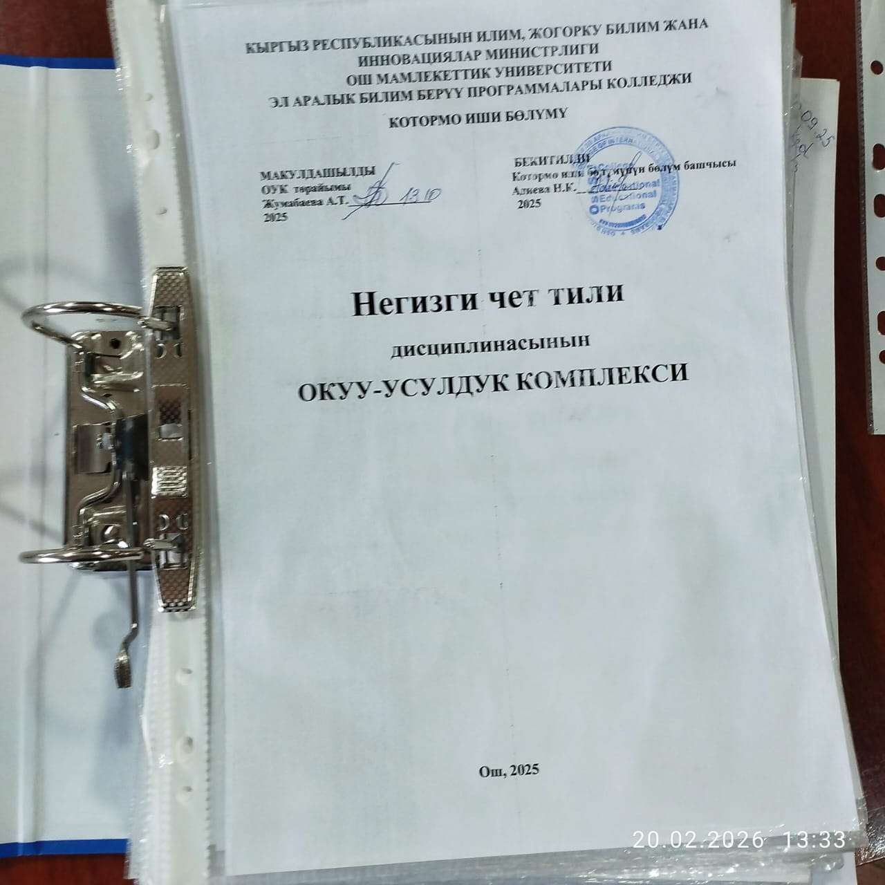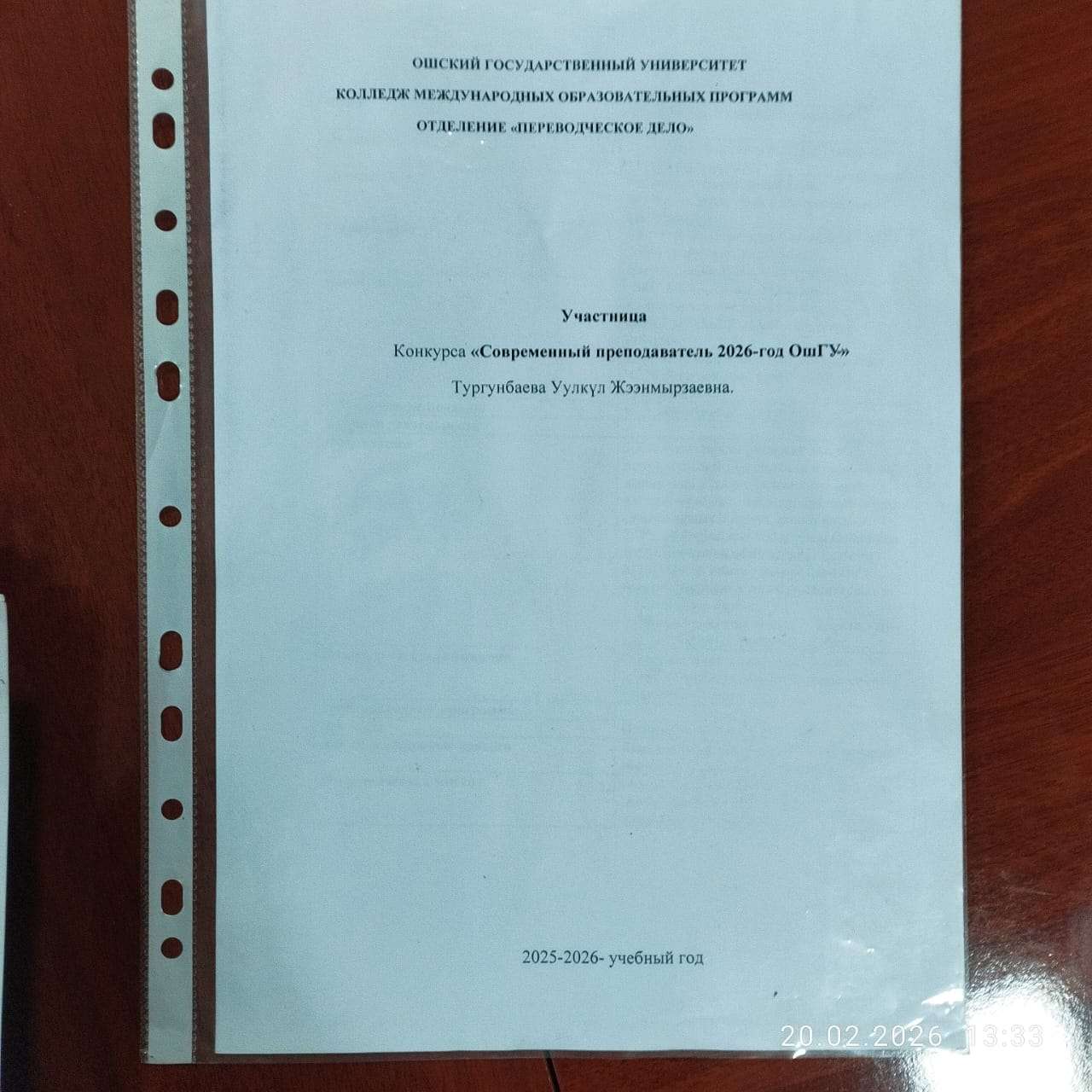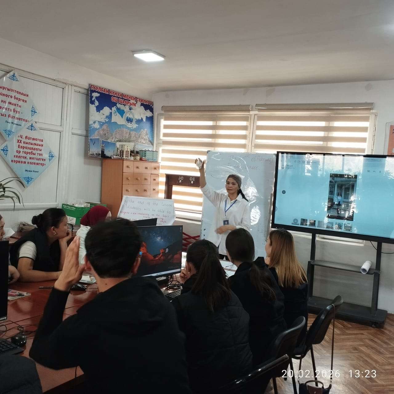 20.02.2026-жылы Эл аралык билим берүү программалары колледжинин «Котормо иши» бөлүмүнүн окутуучусу Тургунбаева Уулкүл Ош мамлекеттик университетинин Окутуунун сапаты жана методикалык камсыздоо бөлүмү тарабынан уюштурулган «Ош МУнун заманбап окутуучусу – 2026» конкурсунун 2-этабына катышты. Конкурстун алкагында талапкер ПДС-9-1-24 тайпасына “Home and Housing” темасында интерактивдүү усулдарды жана жаңычыл технологияларды колдонуу менен мазмундуу, кызыктуу сабак өтүп берди.