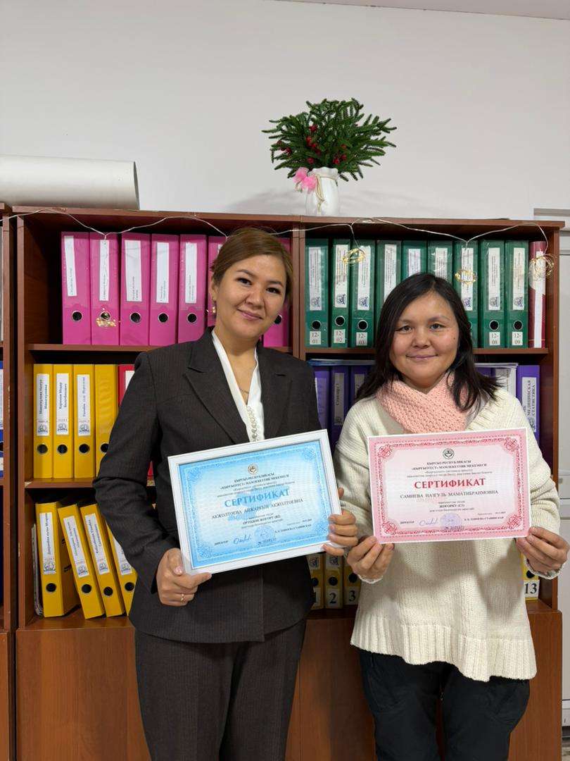 По итогам тестирования сертификаты получили: Самиева Н.М., Маматкулова Н.М., Райимбек уулу Н., Акжолтоева А.А., Ырысбаев Э.Р., Акбалаева Б.А.