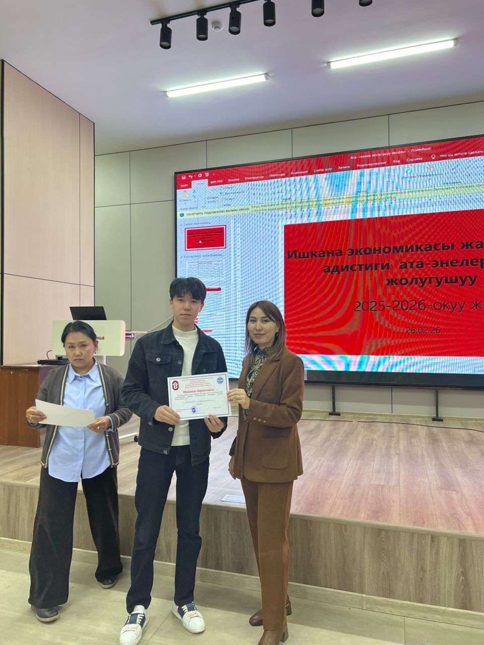 Экономика, бизнес жана менеджмент институтунун, ишкана экономикасы жана башкаруу кафедрасынын окутуучу – профессордук курамы тарабынан Ата энелер менен кызматташтыкты күчөтүү максатта, 26- февраль күнү Ата энелер чогулушу уюштурулуп, өткөрүлдү. Бул иш чарага институттун директору, э.и.д., профессор Т.М. Исраилов катышып, ата энелерге ыраазычылык билдирип, студенттерге каалоо тилектерин айтып өттү. Иш чарада ата энелерге анкеталар берилип, кафедра башчы, окутуучулар суроолоруна жооп беришти