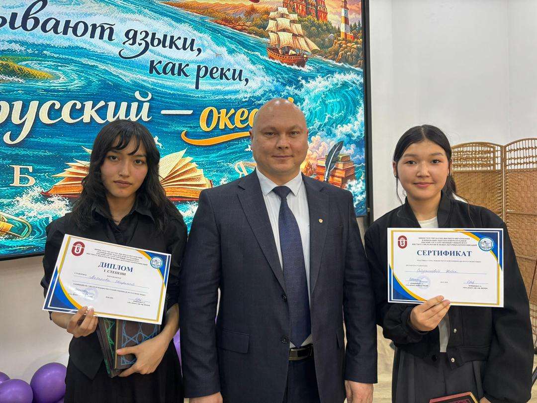 Студентки первого курса гр БИ-3-25 Акбарова Ширинай и Сайдалиева Жибек приняли участие в Олимпиаде по русскому языку, проводимого в рамках Недели русского языка, в ИФиМК среди студентов первых курсов ОшГУ, где прошли до 3-го тура. В результате Акбарова Ширинай получила первое место.