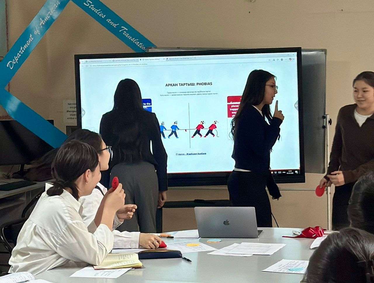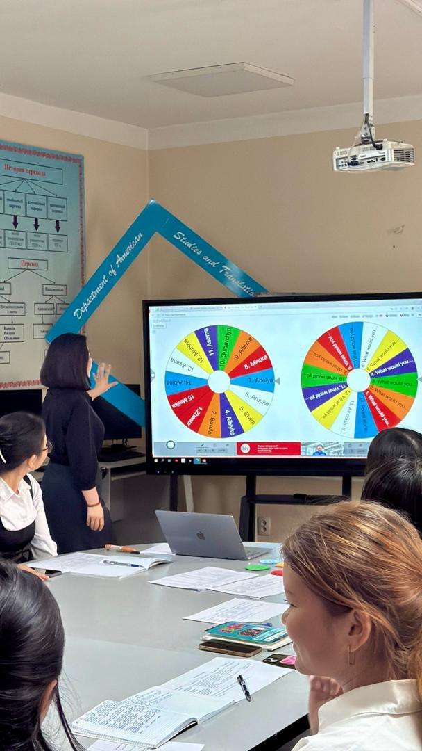 Цифровые технологии: Для повышения вовлеченности студентов преподаватель мастерски использовала онлайн-платформы «Spin the Wheel» (Вращающееся колесо) и «Arkan-Tartysh», превратив начало занятия в увлекательную игру.