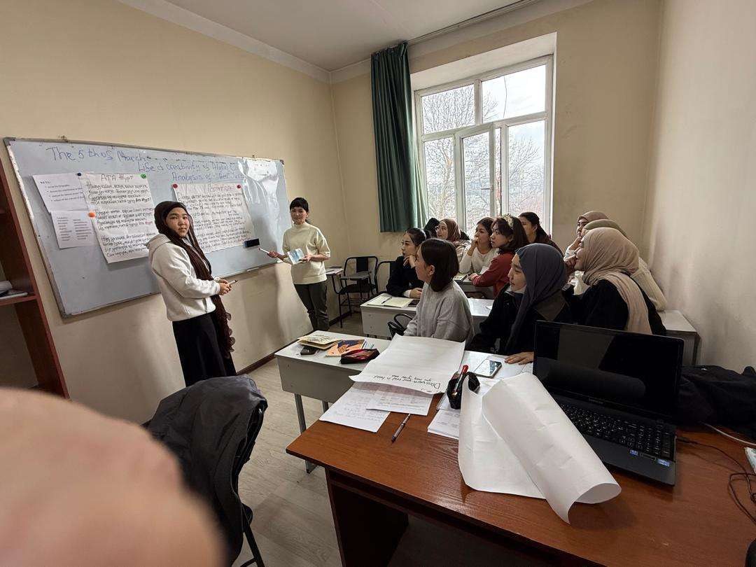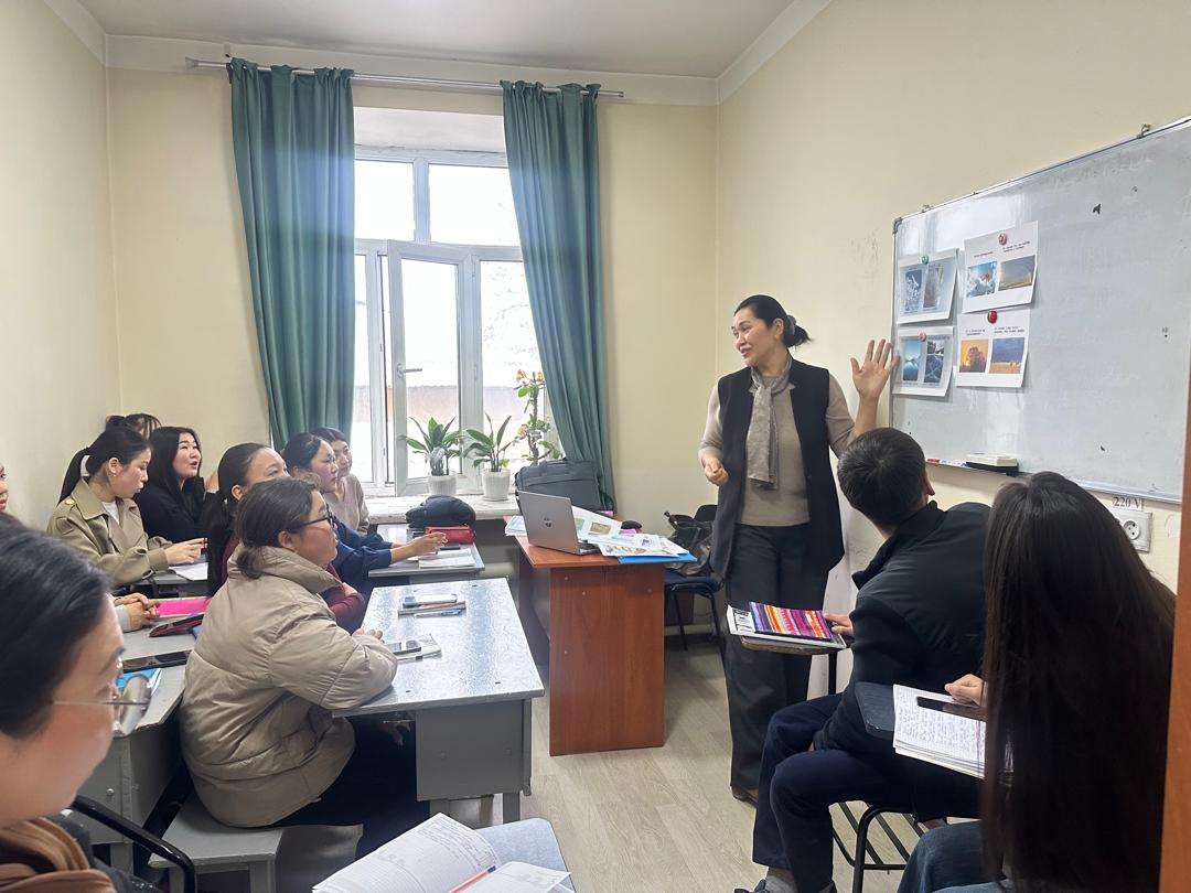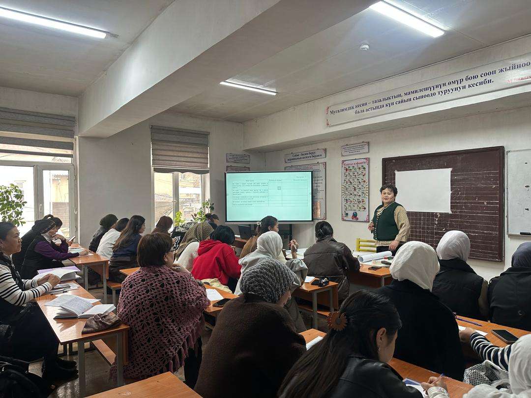 Сабактарга ОшМУнун методист-координаторлору М. Нурмаматова жана Ө. Шаимкулова катышып, окутуучулардын ишин байкап, методикалык кеңештерин беришти.
