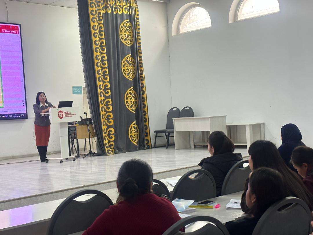 Ошондой эле Филология жана маданият аралык коммуникация институтунун окутуучусу Акимжанова Назира конкурстук сабагын көрсөтүп, кесиптештерине үлгү болчу тажрыйбасын бөлүштү.