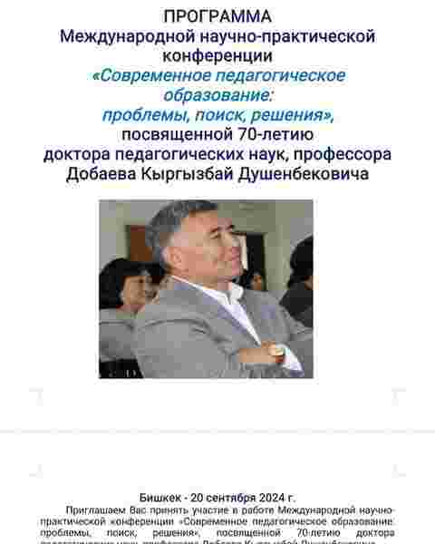 Кафедрабыздын улук окутуучулары Ж. Ниязова, Ж. Бекматова жана Ж. Нураковалар 20.09.2024 жылда п.и.д. профессор К. Дообаевдин 70 жылдыгына арналган Бишкек шаарында уюштурулган: «Современное педагогическое образование: проблемы, поиск, решения» деген аталыштагы эл аралык илимий практикалык конференцияга өздөрүнүн докладлары менен катышып келишти.
