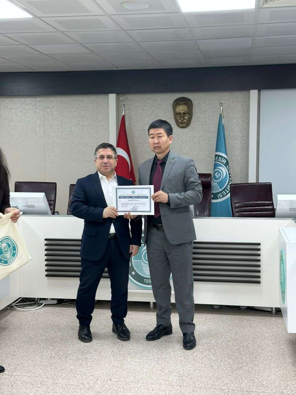 2026-жылдын 9–16-март күндөрү Ош мамлекеттик университетинин делегациясынын курамында Экономика, бизнес жана менеджмент институтунун «Менеджмент жана мамлекеттик башкаруу» кафедрасынын доценти Сакибаев К.Ш. Балыкесир университетинде (Турция) тажрыйба алмашуу максатында иш сапарда болуп келди.