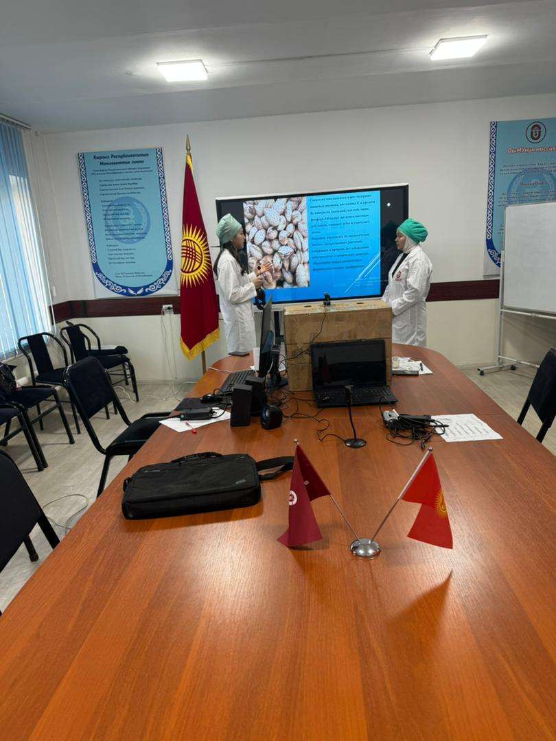 Дары өсүмдүктөрүнөн жасалган тиш порошогу” аттуу темада доклад жасашты. Даярдаган окутуучулар Рысбеков Нурдөөлөт Рысбекович, Жакыпова Гулмира Мамадалиевна болду.