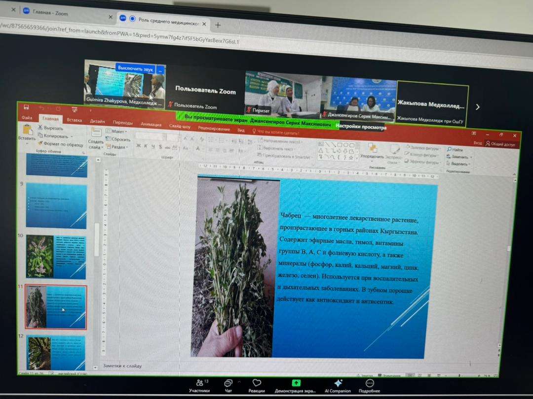 «Орто медициналык кызматкерлердин глобалдык коомдук саламаттыкты сактоону камсыз кылуудагы ролу: заманбап чакырыктар жана инновациялык чечимдер» аттуу илимий - практикалык эл аралык онлайн конференцияда медициналык колледждин фармация адистигинин студенттери 1-орунга ээ болушту. Медициналык колледждердин студенттери үчүн илимий-практикалык онлайн конференцияда фармация адистигинин 2- курсунун студенттери Сайфидинова Эльмара Элнуровна, Турдуахунова Бегимай Элдиярбековна «Жаңы дем.