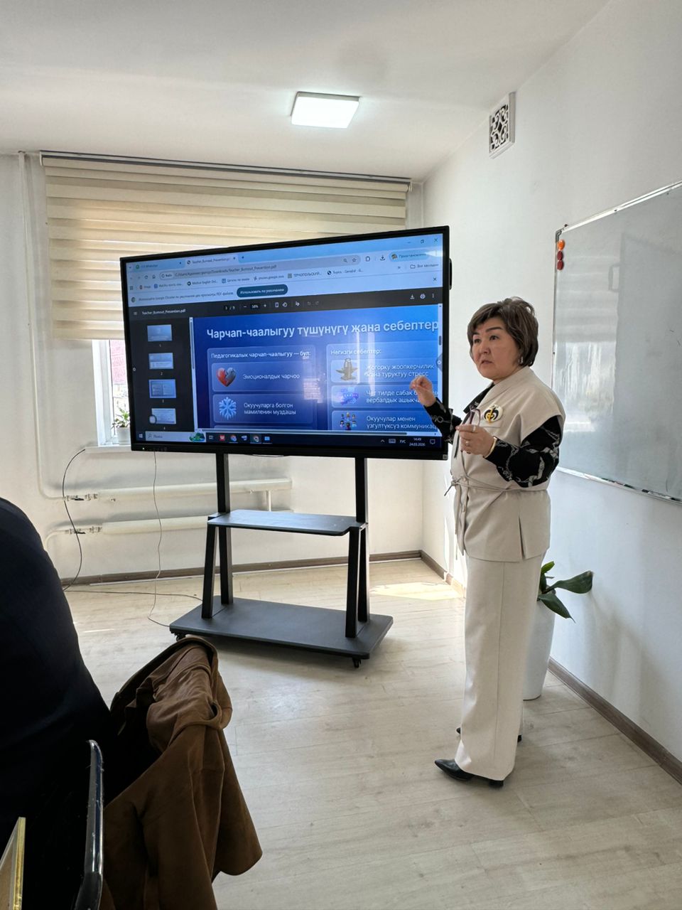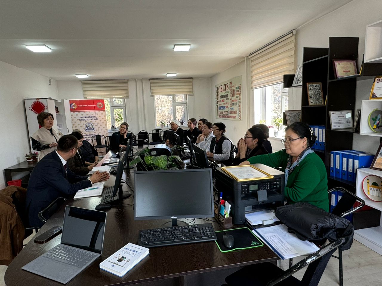 2026-жылдын 24-мартында эл аралык медицина факультетинин социалдык-гуманитардык дисциплиналар кафедрасынын окутуучулары үчүн белгилүү адис, психология илимдеринин доктору, профессор Жолдошева Акчач Өлмасовна «ЖОЖдогу окуу процессин уюштурууда мугалимдин педагогикалык-психологиялык көндүмдөрү» аттуу тренинг өтүп берди. Иш-чара практикалык кеңештер, эксперименталдык көнүгүүлөр, суроо-жооп жана илимий дискуссия менен коштолду. Соңунда кафедра башчысы С.М. Амиралиев уюштурулган семинар катышуучулар үчүн эң пайдалуу болгондугун белгилеп, тренерге факультеттин атынан ыраазычылык кат тапшырды.