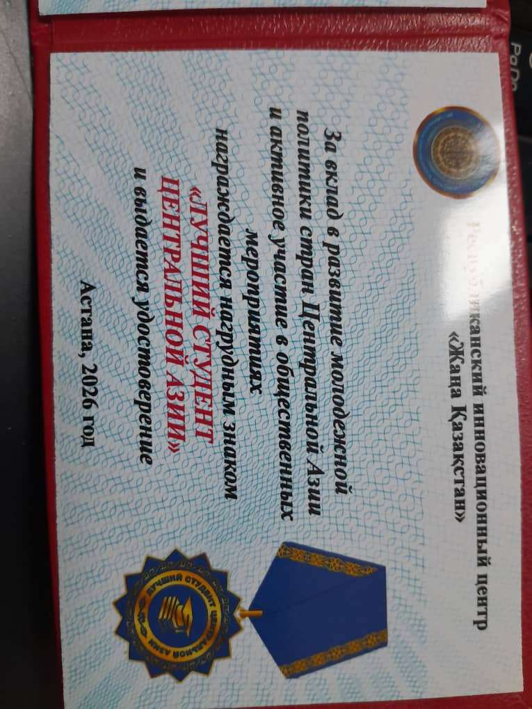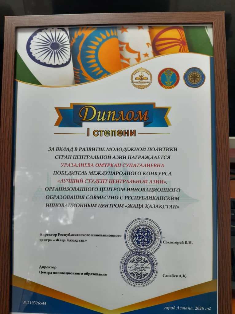 Илим-билимге кызыгуу жана жаштардын мотивациясын арттырууга багытталган Казакстан Республикасындагы “Инновациялык Билим Берүү” борбору жана «Жаңа Қазақстан» республикалык инновациялык борбору менен биргеликте уюштурулган сынакта Уразалиева Өмүркандын Борбордук Азиянын жаштар саясатынын өнүгүүсүнө кошкон салымы, коомдук-маданий иштерге активдүү катышуусу, билимге умтулуусу, аракетчилдиги жана максатка жетүүдөгү жигердүүлүгү жогору бааланды.Өмүркандын келечектеги иштерине албан-албан ийгиликтерди каалайбыз.