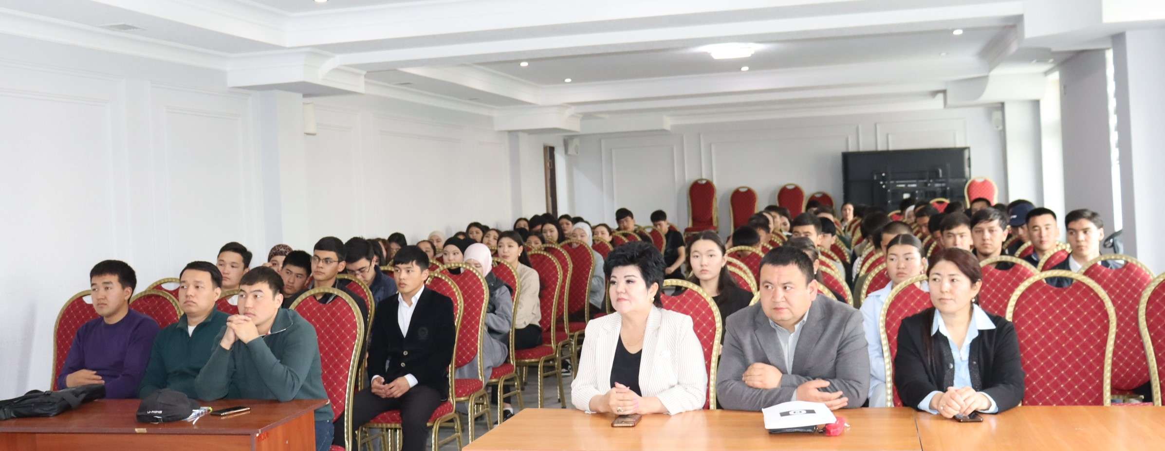 Жолугушуунун жүрүшүндө судьялар Нурлан Абдразаков жана Алтынай Асаналиева мыйзамдуулукту камсыз кылуу боюнча өз тажрыйбалары менен бөлүшүп, “Жаштар арасындагы кылмыштуулуктун алдын алуу” жана “Үй-бүлөдөгү зомбулук-бүгүнкү күндүн актуалдуу көйгөйү” деген теманын айланасында баяндама менен чыгышып, студенттер үчүн кеңири түшүндүрмө беришти.