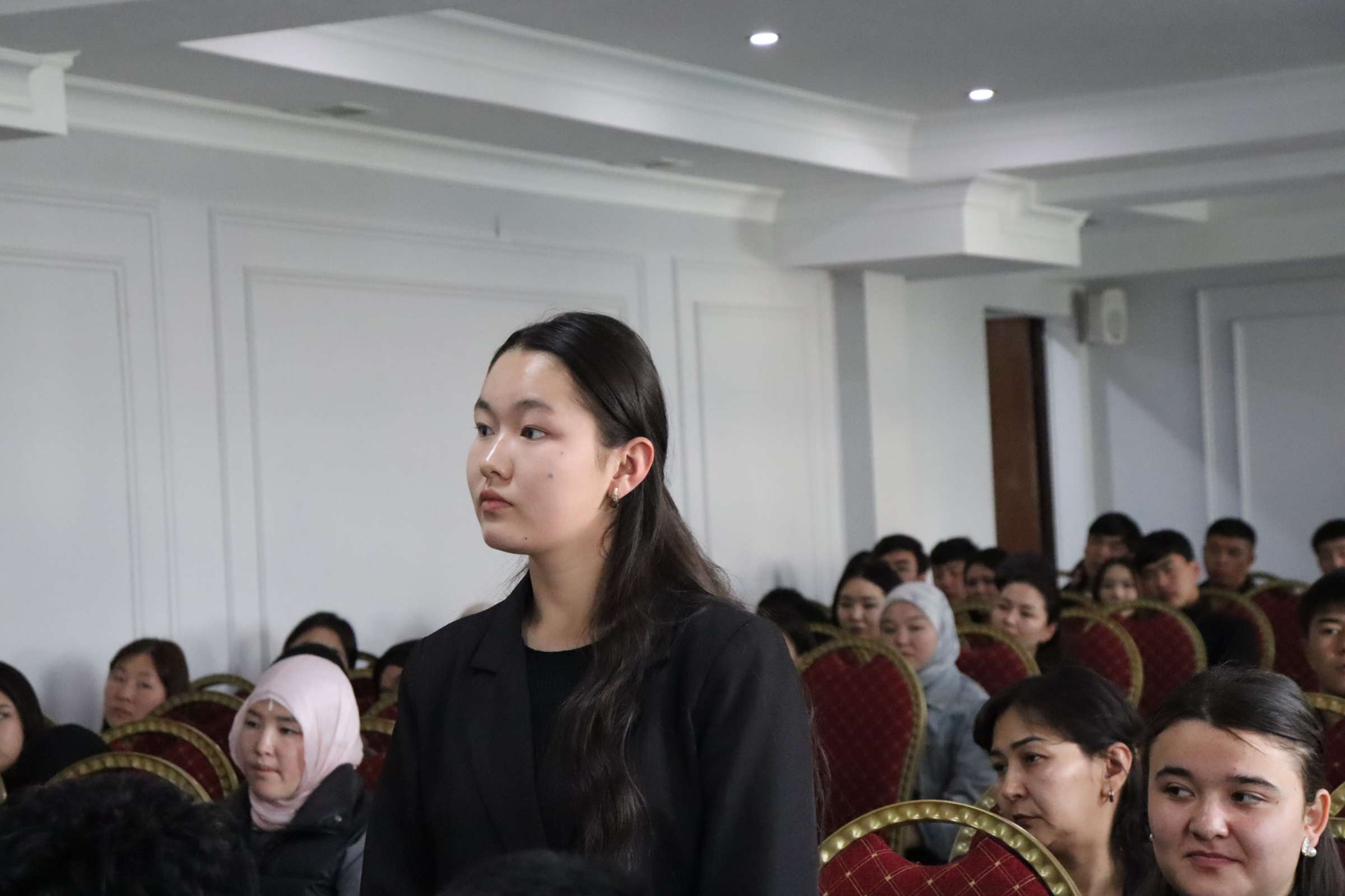 Студенттер судьяларга кызыктырган суроолорун беришип, юридикалык кесипти тандоо, практика өтүү жана келечекте сот тармагында иштөө мүмкүнчүлүктөрү тууралуу маалымат алышты.