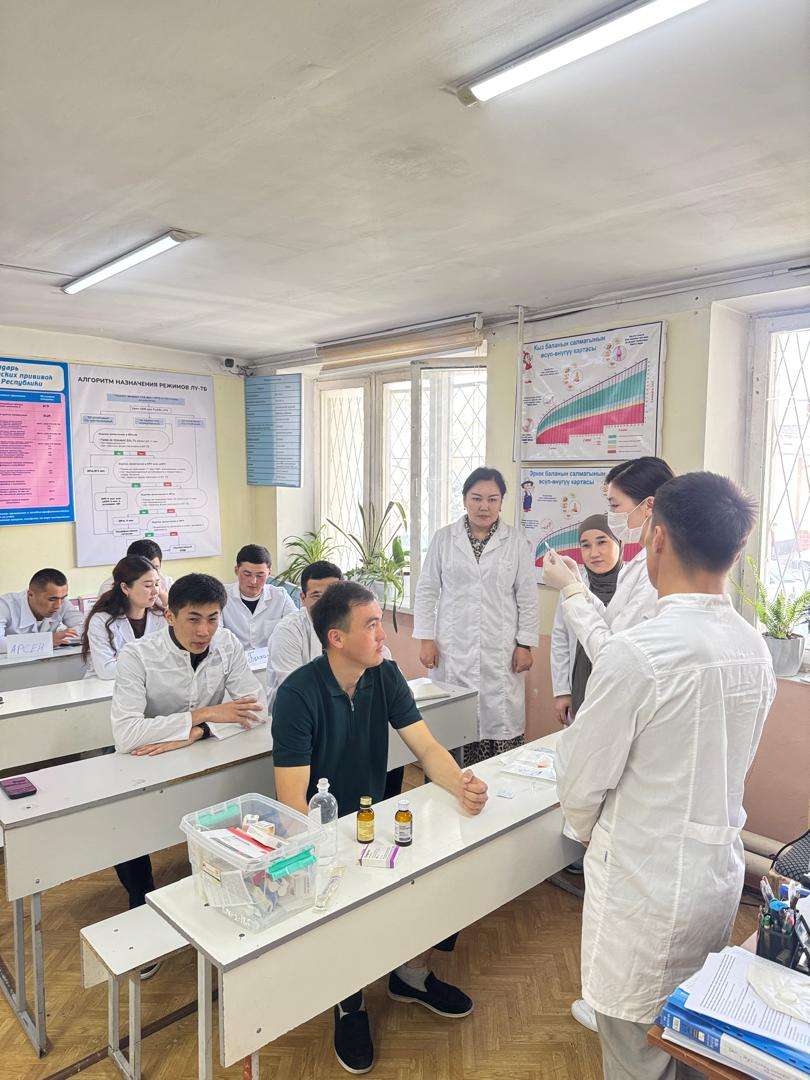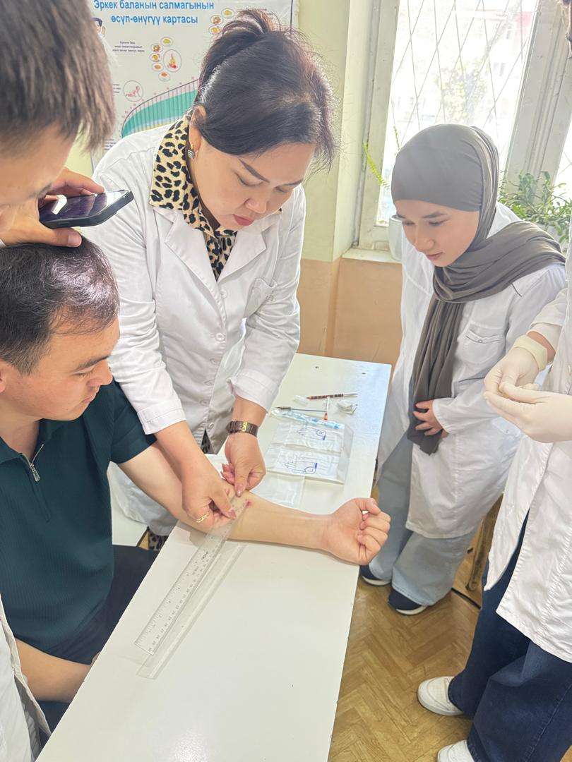 Мастер-класс был проведён со студентами группы ЛК-4-20 на тему: «Техника проведения пробы Манту» совместно со старшим преподавателем кафедры Внутренних болезней и семейной медицины М.С.Жуманалиевой. В ходе занятия были продемонстрированы основные этапы выполнения туберкулиновой пробы, правила оценки результатов и меры инфекционной безопасности. Студенты активно участвовали в практической части и закрепили полученные знания.