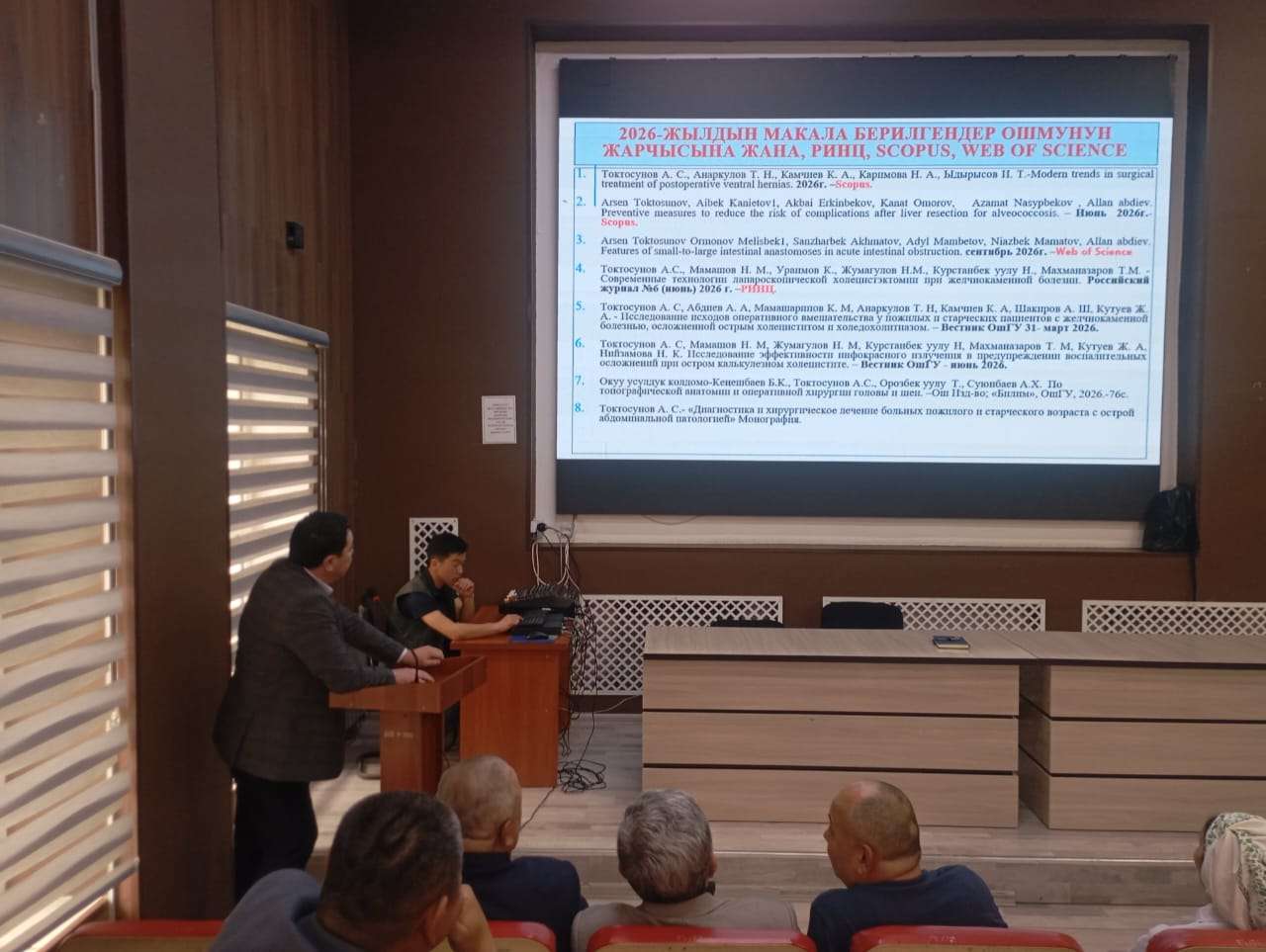 Хирургиялык оорулар кафедрасынын башчысы, медицина илимдеринин доктору. Токтосунов А.С. жарым жылдык отчетун ийгиликтүү тапшырды