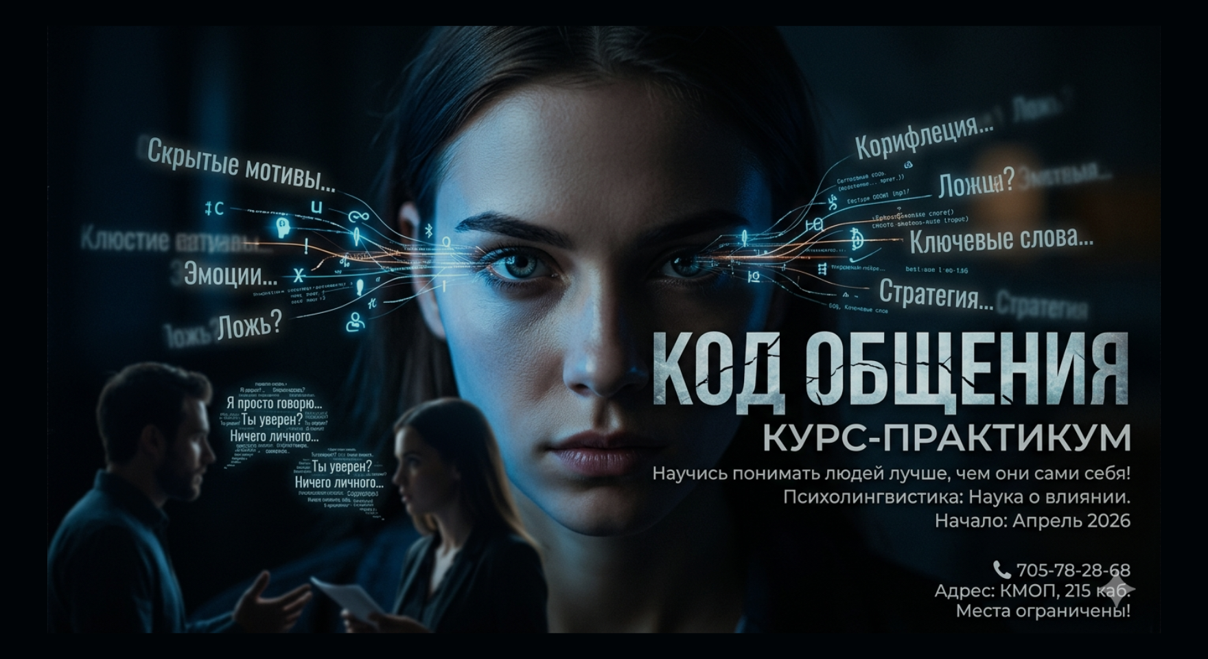 Колледж международных образовательных программ (КМОП) приглашает студентов погрузиться в мир современной науки о языке и сознании. В апреле 2026 года на базе колледжа начинается авторский курс-практикум «Код общения».