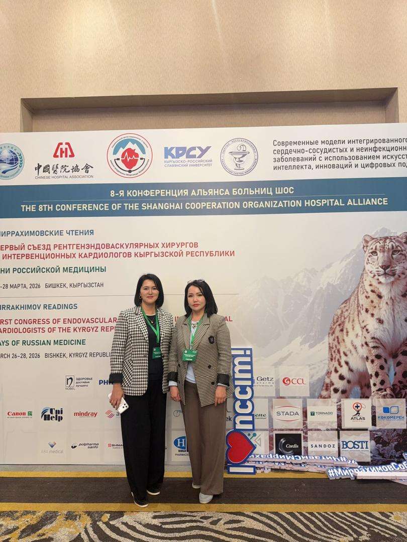 Ички оорулардын пропедевтикасы жана факультеттик терапия кафедрасынын башчысы, м.и.к., доцент Э.Н. Бекешова жана окутуучу Г.А. Арипова 2026-жылдын 26-мартында Бишкек шаарында өткөн «Миррахимовские чтения-2026» эл аралык илимий-практикалык конференциясына катышып келишти.