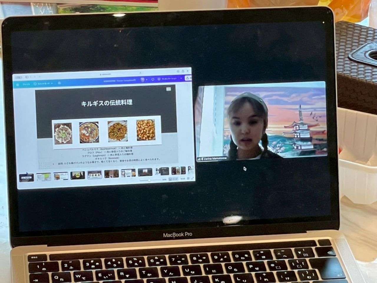 В ходе встречи студенты представили содержательную презентацию на японском языке, ознакомив участников с историей Кыргызстана, его национальными особенностями, достопримечательностями и культурным наследием. Особое внимание было уделено сходствам и различиям культур, что вызвало живой интерес у участников.Кыргыз Республикасы тууралуу жапон аудиториясы үчүн онлайн-презентация