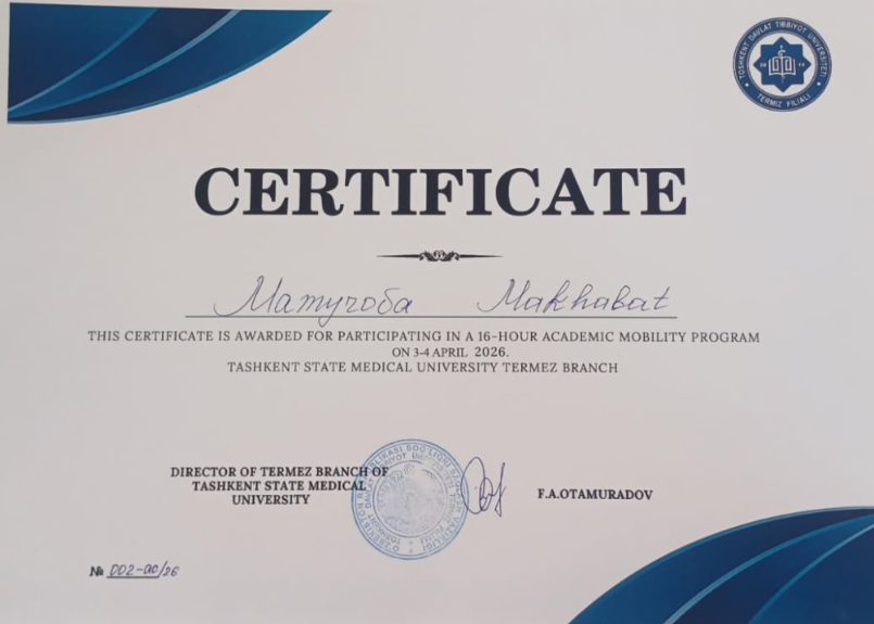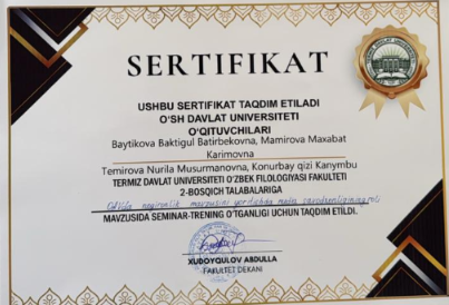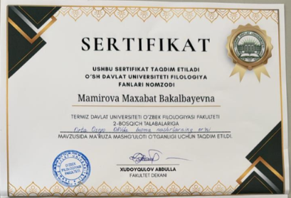 2026-жылдын 2-4-апрель күндөрү Өзбекстан Республикасынын Термез мамлекеттик университетинин чакыруусу менен академиялык мобилдүүлүктү чыңдоо жана эки өлкөнүн билим берүү тармагындагы кызматташтыкты кеңейтүү максатында Журналистика кафедрасынын улук окутуучусу Махабат Мамырова аталган окуу жайда конок-лекция өтүп келди.