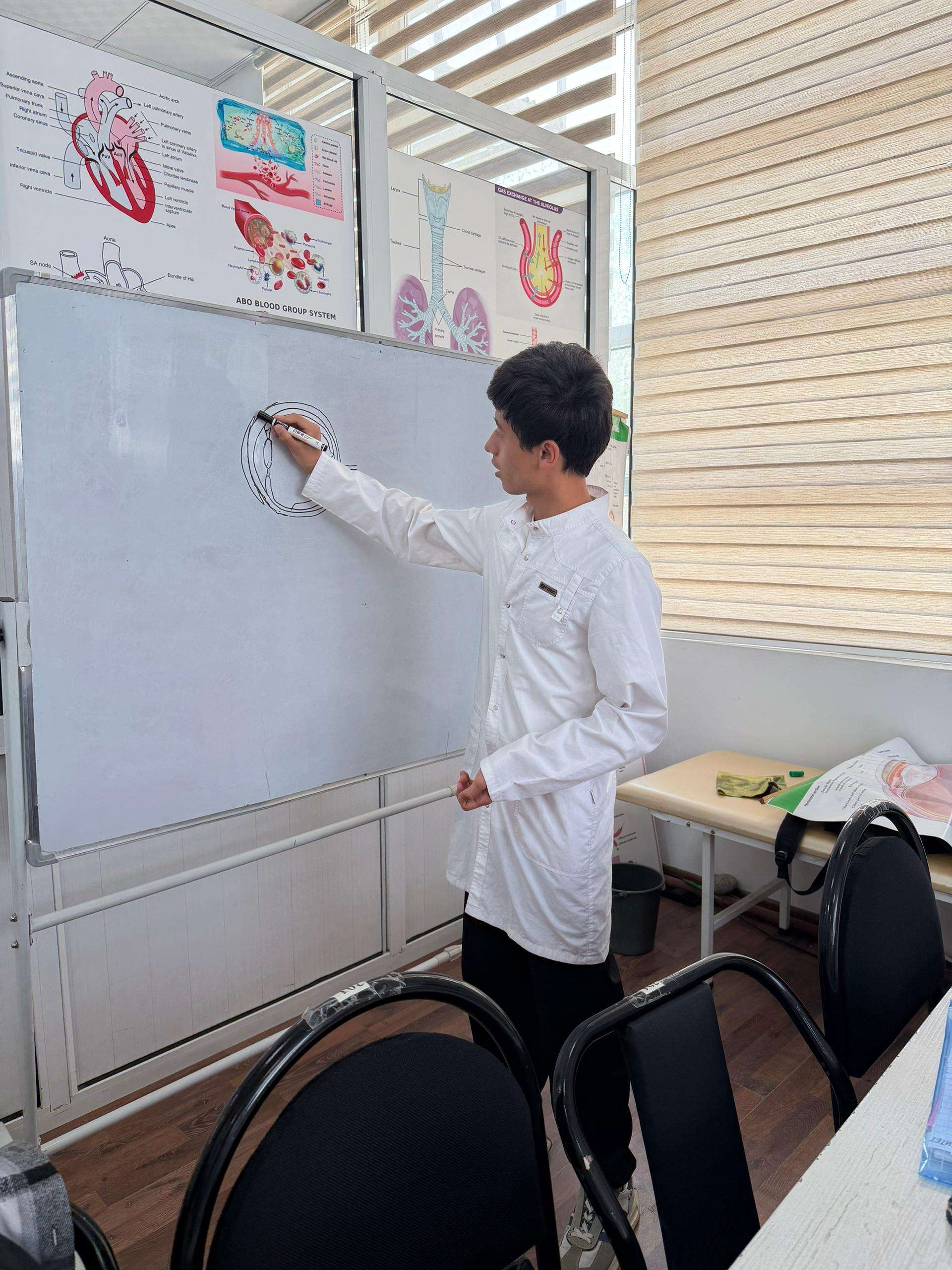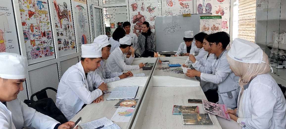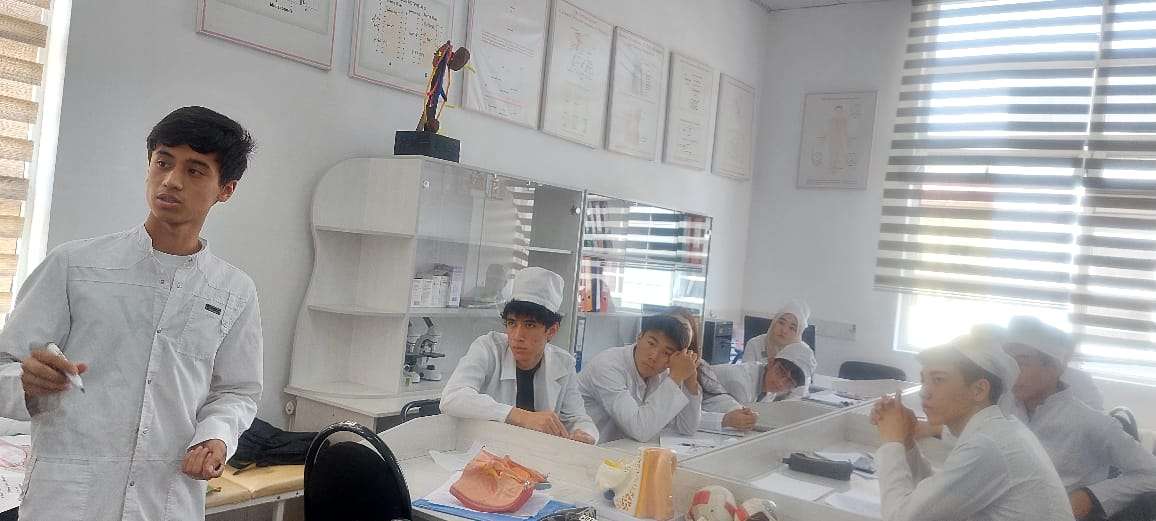 Тьюторы второго курса Жеңишбек кызы Айназик и Юлдашев Аброрбек рассказали студентам первого курса об устройстве университета, разъяснили сложные темы по базовым дисциплинам (анатомия, гистология), а также поделились эффективными методами подготовки к занятиям и экзаменам.