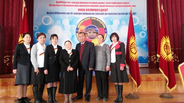 2016-жылдын 28-29- октябрында ОшМУнун чоң актылык залында чет тилдер факультетинин немис тили кафедрасынын 50 жылдык мааракесине арналган эл аралык конференция болуп өттү. Конференцияга 50дөн ашуун чет өлкөдөн келген меймандар, анын ичинде Германиянын Кыргызстандагы элчисинин орун басары Ханс Вольфганг Эмингер, Щвейцариянын Кыргызстандагы элчисинин орун басары Эрнесто Пианто, Кыргызстандагы немис тилчилер союзунун башчысы Замира Мамбетова, ДААД, Гёте институту, Бош фондунун башчылары жана башкалар катышышты. Бул меймандар кафедранын 50 жылдык мааракеси менен кызуу куттуктап, белектерин тапшырышты. Мындан сырткары Германиянын окуу программаларынын өкүлдөрү сүйлөшүп, Германияга баруу мүмкүнчүлүктөрү тууралуу айтып беришти. Германиядан тилдик жана башка курстардан өтүп келген студенттер да өздөрүнүн тажырыйбалары тууралуу ой бөлүшүштү.