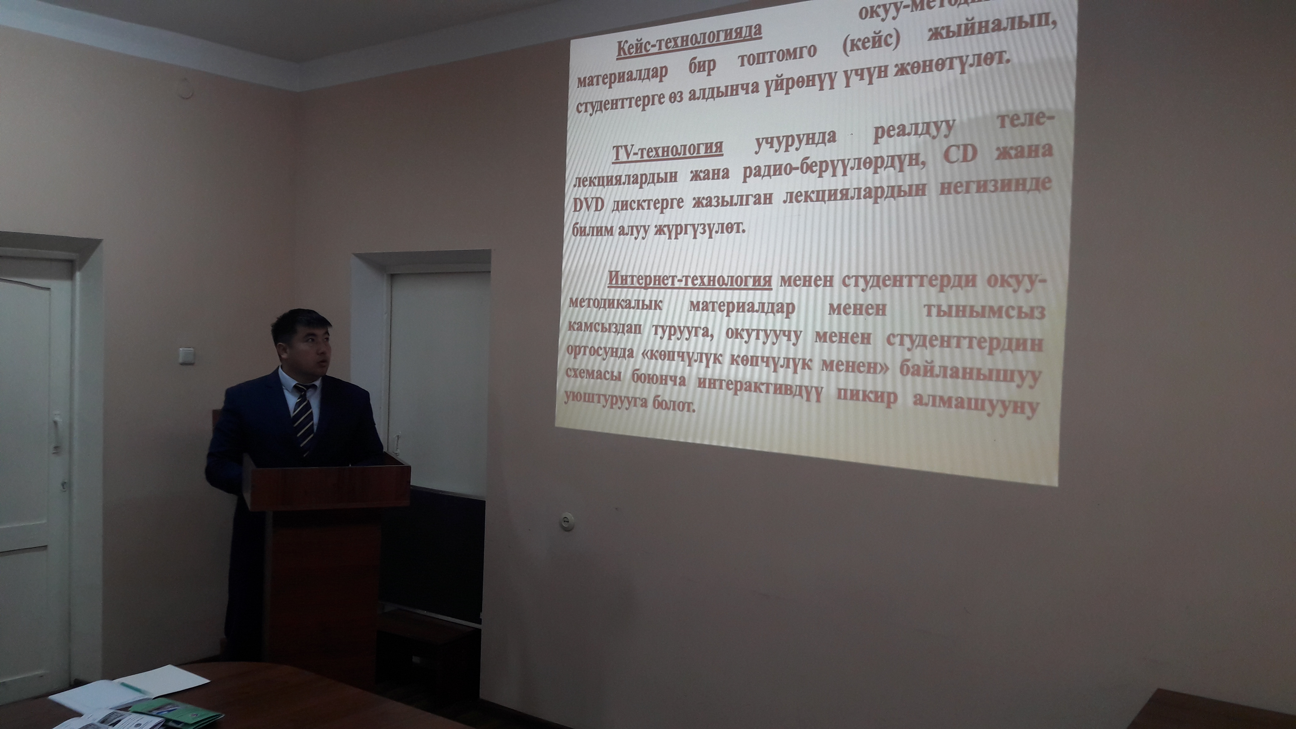 27.01.2018-ж. ОшМУнун Дистанттык билим берүү департаменти жана юридика факультети тарабынан "Дистанттык окутуунун азыркысы жана келечеги" аттуу окуу семинары юридика факультетинде уюштурулду.Мында ОшМУнун жогоруда аталган департаменттин директору,доцент А.Ч.Оморалиев баштаган бир топ кесипкөй адистер келип бүгүнкү жаңы технологиянын артыкчылыктуу багыттары менен жамаатка тааныштырып,суроо жооптор менен коштолуп кызуу талкуу менен жыйынтыкталды. Мындай практикалык окуу-семинарларынын байма-бай өтүлүп тургандыгы бир топ жакшы экендигин семинардын катышуучулары жана келген коноктор бир ооздон белгилеп өтүштү.