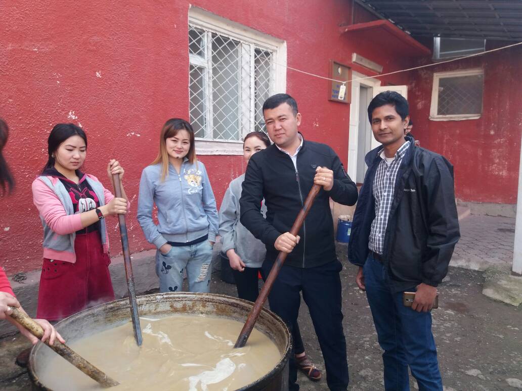 Нооруздун белгиси болгон, кыргыздын улуттук тамагы сүмөлөк кайнатылып, студенттерге таратылды. Мындай саамалык Ош МУну ректораты жана профсоюз уюму тарабынан колдоого алынып, жыл сайын уюштурулуп турат.