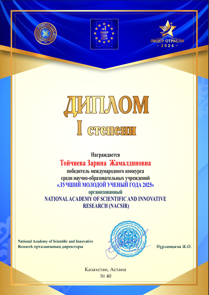 Октябрь, 2025. Участница международного конкурса “Лучший молодой ученый года - 2025”.
