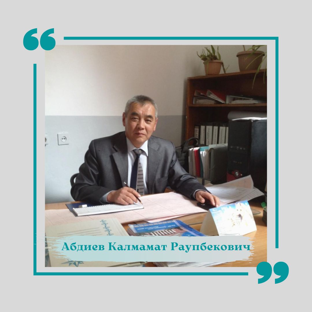 В 2012 году успешно защитил кандидатскую диссертацию. Его можно с уверенностью назвать профессионалом высокого уровня. До января 2020 года заведовал кафедрой ПКРЯ и КР. Абдиев Калмамат Раупбекович был прекрасным семьянином, уважал коллег и знал цену дружбы.