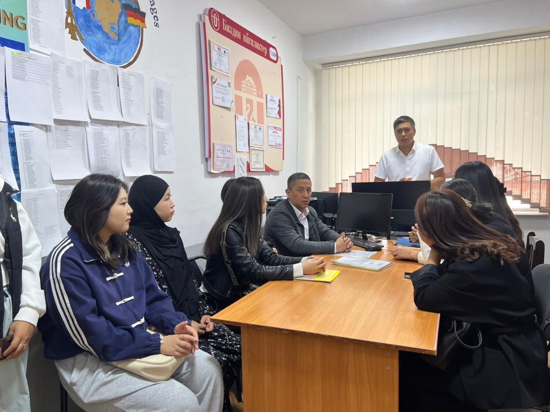 Бугун ЭББП колледжине, ОГПУнун колледжи тарабынан14 студент ички академиялык мобилдуулук боюнча келип Чет тили болумундо тажрыйба алмашууну отоп башташты. Сегодня 14 студентов колледжа ОГПУ приехали в колледж КМОПпо внутренней академической мобильности и начали обмен опытом на кафедре иностранных языков. Today, 14 students from the OSPU College arrived at the CIEP as part of an internal academic mobility program and began an exchange of experience in the Department of Foreign Languages.