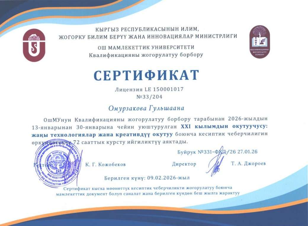 Кабыл алуу боюнча On-Line сурап билүү жайы