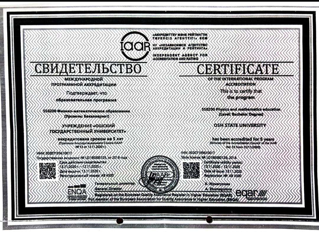 550200 Физика- математикалык билим берүү (пролфиль: физика), бакалаврат