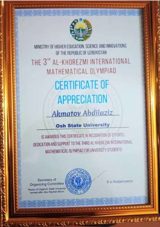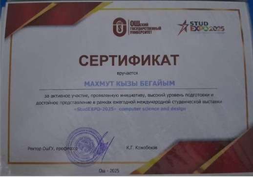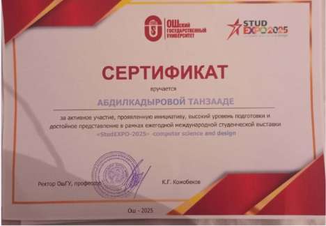 Ыраазычылык кат. "Салам-Ош - 2025" II Эл аралык туристтик көргөзмө-жарменкеси уюштуруу комитети Ош Мамлекеттик Университетинин мугалими, физика-математика илимдеринин доктору, профессор Ташполотов Ысламидинге активдүү катышкандыгы үчүн ыраазычылык билдирет.