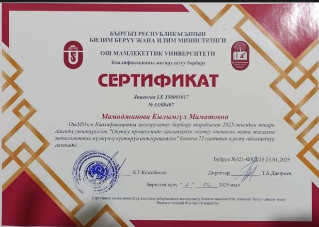 Мамаджанова Кылымгүл Маматовна