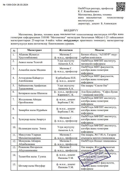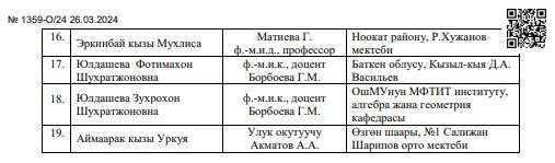 Кабыл алуу боюнча On-Line сурап билүү жайы