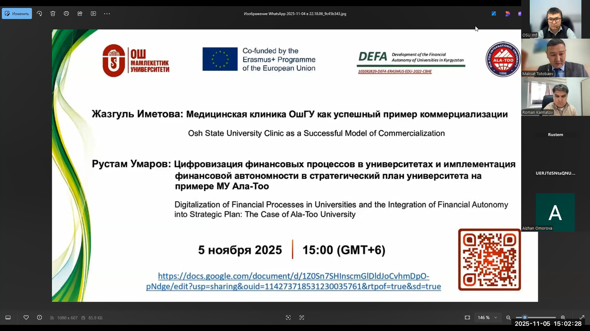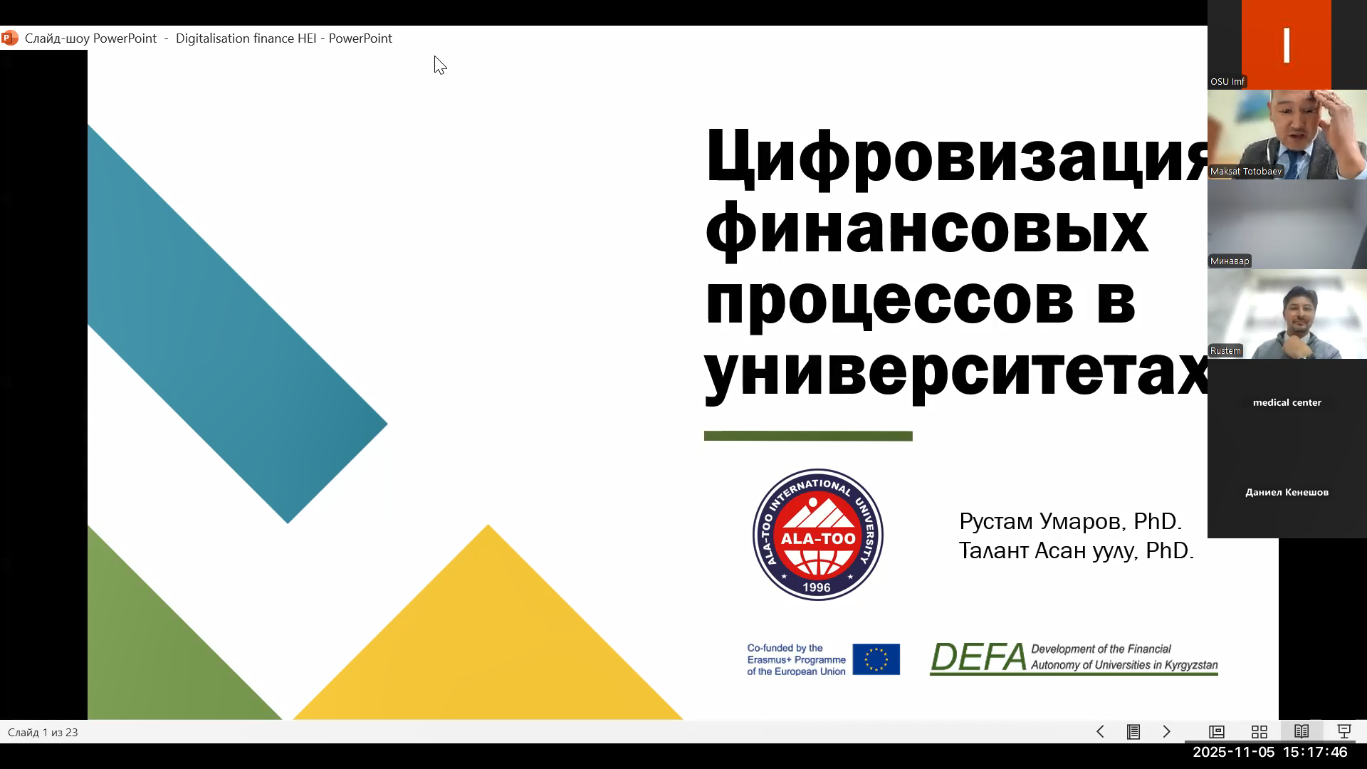 Ошский государственный университет стал партнёром в новом проекте Erasmus+ D-TIDE-KG Международный медицинский факультет ОшГУ вошёл в консорциум победителей проекта Европейской комиссии Erasmus+ под названием D-TIDE-KG — Digital Transformation for Inclusive Doctoral Education in Kyrgyzstan. Координатором проекта является Международная высшая школа медицины (МВШМ). Проект, рассчитанный на 36 месяцев и поддержанный в рамках конкурса ERASMUS-EDU-2025-CBHE, направлен на цифровую трансформацию PhD в Кыргызстане. Его ключевые цели включают: • создание и пилотирование цифровых PhD-программ; • повышение доступности докторантуры в удалённых регионах; • гармонизацию с Болонским процессом и Европейским образовательным пространством; • развитие кадрового потенциала университетов; • интеграцию результатов в национальные образовательные стратегии. В реализации проекта участвуют 12 организаций, включая университеты из Германии, Литвы и ведущие вузы Кыргызстана, а также Министерство науки, высшего образования и инновации КР. Международный медицинский факультет ОшГУ активно участвует в разработке цифровой платформы и внедрении пилотных программ, что подтвердит его стремление к инновациям и интернационализации PhD и магистерского образования. Osh State University Becomes a Partner in the New Erasmus+ Project D-TIDE-KG The International Medical Faculty of Osh State University has joined the consortium of winning institutions in the Erasmus+ project D-TIDE-KG — Digital Transformation for Inclusive Doctoral Education in Kyrgyzstan. The project is coordinated by the International Higher School of Medicine (IHSM). The project, funded under the ERASMUS-EDU-2025-CBHE call and designed for a 36-month implementation period, aims to digitally transform PhD education in Kyrgyzstan. Its key objectives include: • Developing and piloting digital PhD programs; • Enhancing access to doctoral education in remote regions; • Harmonizing programs with the Bologna Process and the European Higher Education Area; • Building academic and administrative capacity in universities; • Integrating results into national education strategies. The consortium includes 12 institutions, featuring universities from Germany, Lithuania, and leading higher education institutions in Kyrgyzstan, as well as the Ministry of Science, Higher Education, and Innovation of the Kyrgyz Republic. The International Medical Faculty of Osh State University is actively involved in the development of the digital platform and the implementation of pilot programs, reaffirming its commitment to innovation and the internationalization of PhD and Master′s education.