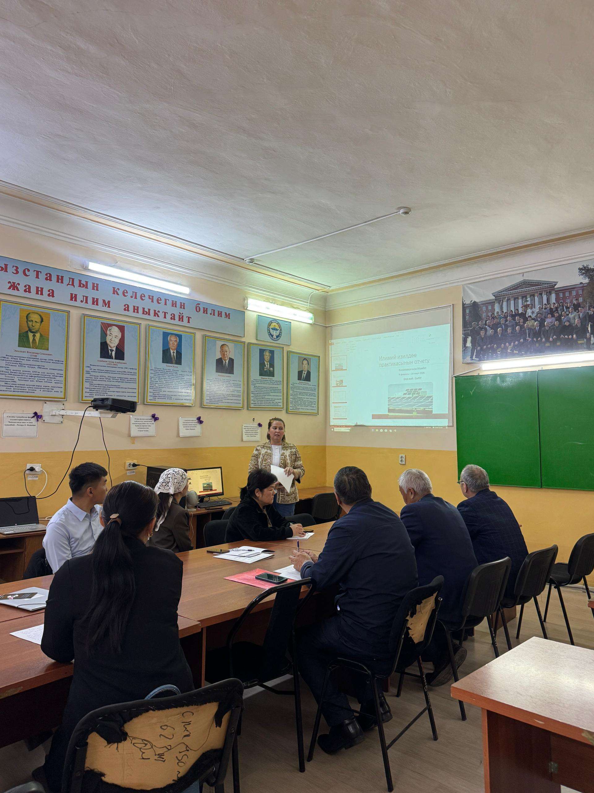 510400 "Физика" адистигинин докторанттарынын практикаларынын жүрүшү тууралуу отчеттору тапшырылды. Бүтүрүүчү PhD докторант Г. Хасанова диссертациясы жана акыркы СКОПУСтан жарык көрүүчү илимий баяндамалары тууралуу билдирүү жасады. 3- курстун PhD докторанты Юсупали уулу Залкарбек 1.09.2025-31.12.2025- ж. чейин диссертациясын аткаруу боюнча практикасынын отчетун тапшырды. Ал эми 2- курстун PhD докторанты Исмаилакун кызы Мухабатхон отчетун үй- бүлөлүк шартына байланыштуу жылдырды. Отчет темаларын эстетменин негизинде кабыл алынды.