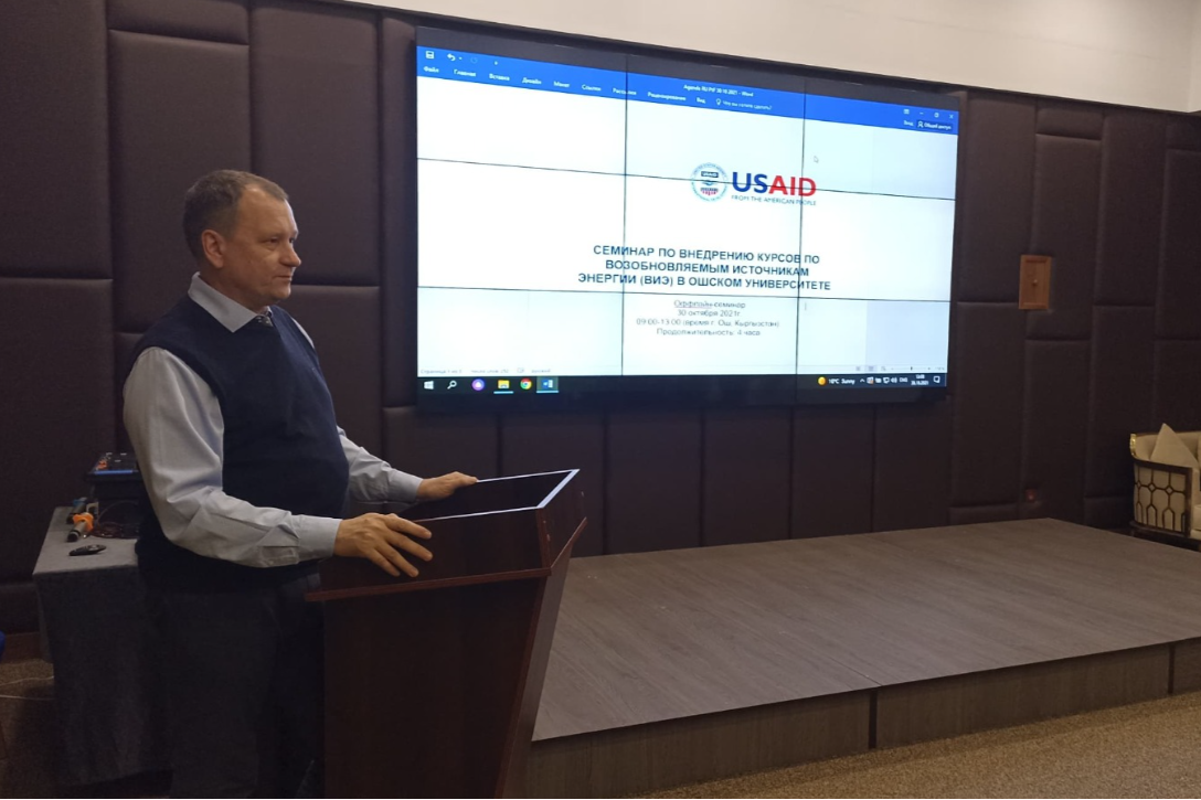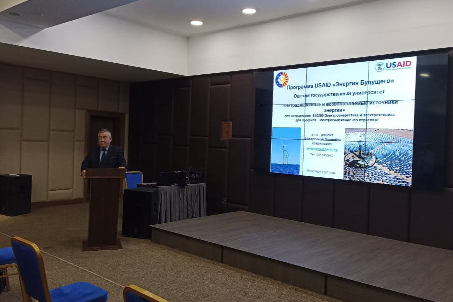 В Ошском государственном университете прошел семинар при поддержке USAID по внедрению курсов по возобновляемым источникам энергии. На семинаре участвовали видные ученые Кыргызстана, специалисты по ВИЭ, аспиранты и докторанты.