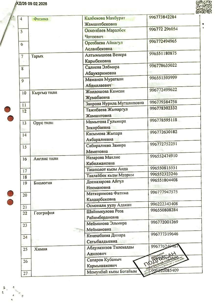 ЭТФ кафедрасынын башчысы, доцент М. Ч. Осконбаев жана улук окутуучусу А. А. Орозбаева Ноокат районунда 11-12- февралда болуп өткөн предметтер боюнча окуучулардын райондук олимпиадасына төрага ( М. Осконбаев) жана мүчө ( А. Орозбаева) болуп келишти. Физика предмети боюнча 6 тереңдетилген 25 базалык негизде 31 окуучу катышты. Текшергенден кийин апелляциялык арыздарды дагы карап чыгышты.