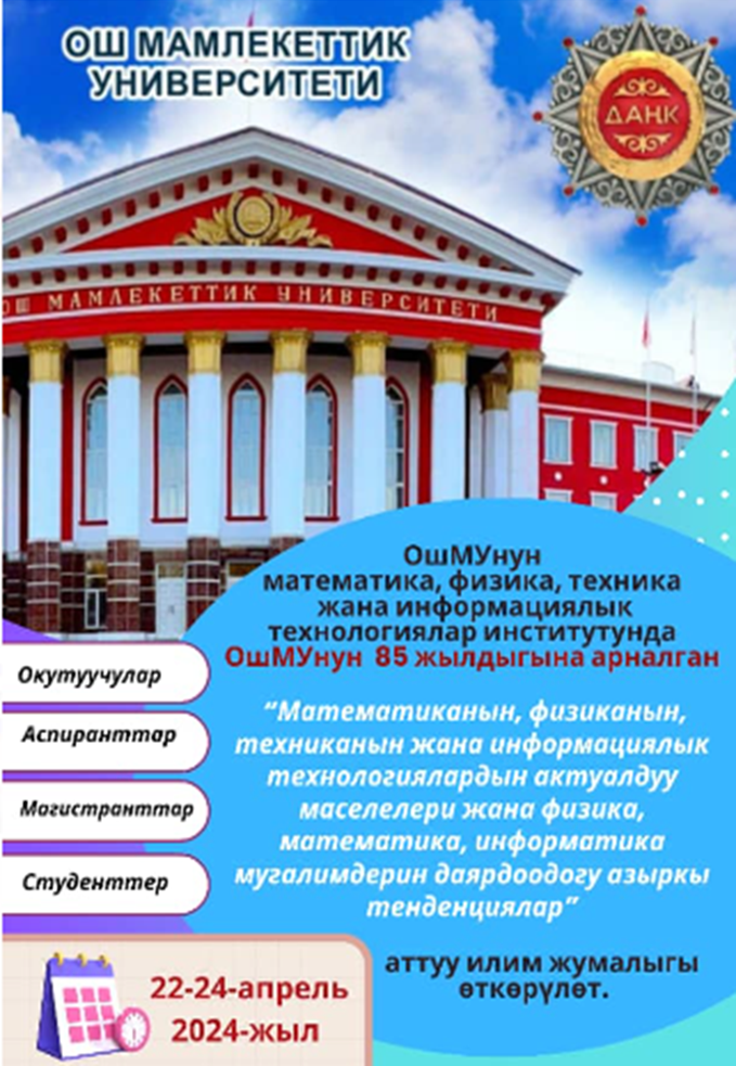 22-апрель күнү МФТИТ институтунун “Математиканын, физиканын, техниканын жана информациялык технологиялардын учурдагы маселелери жана математика информатика мугалимдерин даярдоодогу учурдагы тенденциялар” аттуу илим жумалыгынын ачылыш салтанаты болуп, окутуучулар жана аспиранттар пленардык баяндамалар жасашты.